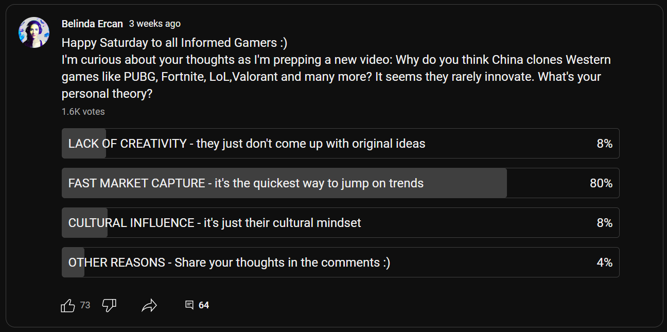 Yup. From indie to AAA, China is set to clone the entire industry. Everyone copies a bit, but while the West does it quietly, China clones strategically to dominate the gaming world. But cloning your way to power has its costs. Thanks to some intel, I’ll reveal their 3-part cloning strategy, why they clone instead of create, and the unspoken tactic that might be their real key to global dominance.