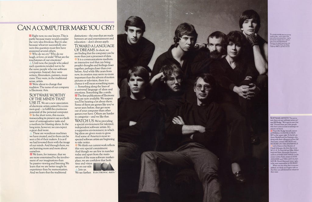 Even Robin Williams, a huge Legend of Zelda fan, who famously named his daughter Zelda, commented on the lack of recognition in gaming, saying “gaming industry is lacking recognizable stars.” And he was right - while a few are well-known, it’s true that game devs aren’t exactly household names. EA - back in the days - actually tried to combat that, by depicting devs as “artists,” celebrating them in ad campaigns like they were the next Beatles of the gaming world.