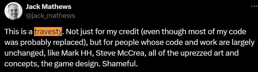 But this was just EA. No other studio would do that. And so, to this day, devs have been fighting to be credited where credit is due.