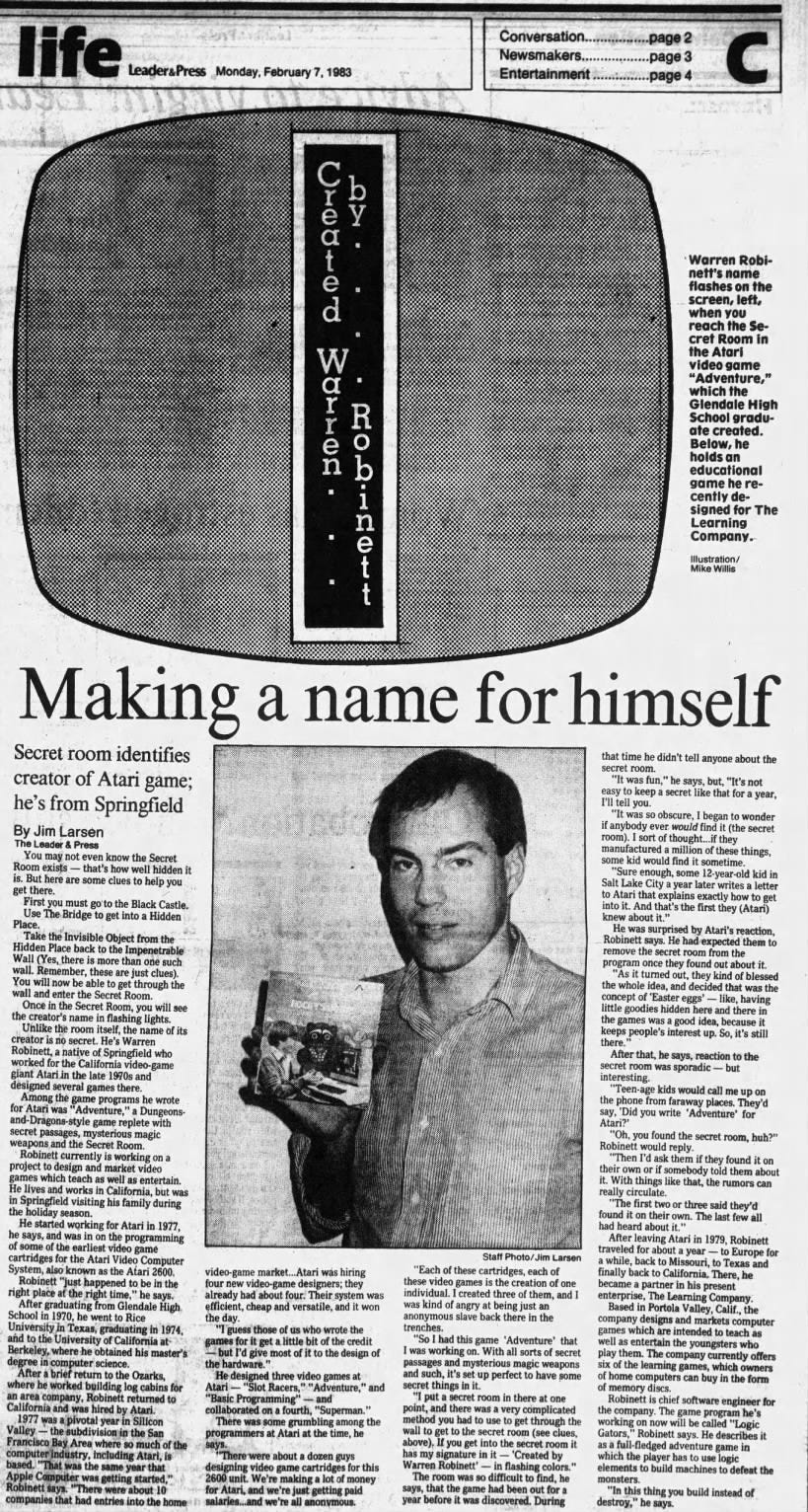 Atari never credited their employees in their games. Why? Out of pure disregard for their work. They weren’t seen as creators, just tools to make the next big hit. But one employee wasn’t having it and did something that would change gaming forever: He secretly coded a hidden room into the game ‘Adventure,’ with the message “Created By Warren Robinett.” When Atari found out a year later, Warren Robinett had already left the company, but his secret message was a wake-up call - it showed other developers they didn’t have to stay invisible.